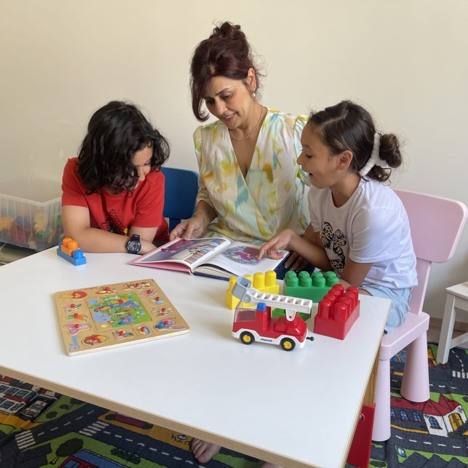 Kinder haben besondere Bedürfnisse an die Einrichtung: der Waschbereich hat einen Wickeltisch, niedrige Waschbecken und eine separate Toilette. Für den Mittagsschlaf oder um sich auszuruhen gibt es den Schlafbereich mit einer eigenen Matratze für jedes Kind. Die Küche ist besonders wichtig: hier bereiten wir – auch oft gemeinsam mit den Kindern – die Mahlzeiten zu und lassen es uns zusammen am großen Tisch schmecken. In den Räumen gibt es verschiedene Bereiche zum Basteln oder Spielen – mache Bereiche werden auch für verschiedene Anlässe umgeräumt. In den Räumen wird natürlich nicht geraucht.